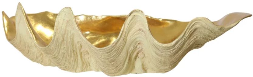 Stylecraft Norman Wyatt Home gold/natural clam bowl features a soft neutral and metallic finish with a smooth, elegant form. Perfect for tables or shelves, it adds sophistication, texture, and a refined accent, enhancing living spaces with modern, versatile style effortlessly.Read More